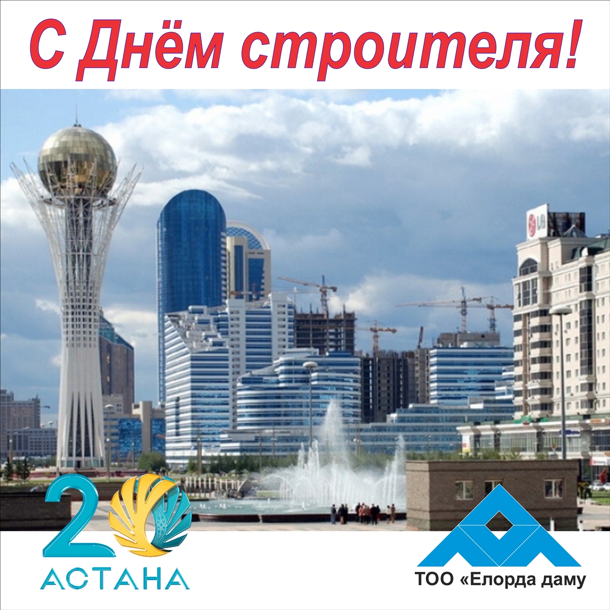 «Елорда даму» ЖШС еліміздің құрылыс саласына қатысы барлық азаматтарың кәсіби мереке – Құрылысшы күнімен құттықтайды! Құрылыс саласы бүгінгі еліміздің экономикасының маңызды буынына айналып отыр.Арман қала, ару қала - Астананың жаңа ғасырдың жасампаз шаһары атануына сіздердің де қосып отырған үлестеріңіз зор. Сіздердің кәсіби шеберліктеріңіздің арқасында Астанамызда жаңа үйлер, мектептер мен бала-бақшалар салынып, жолдар жөнделуде.